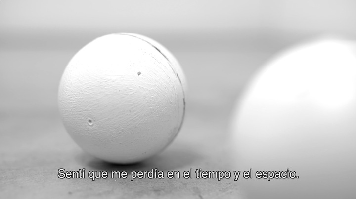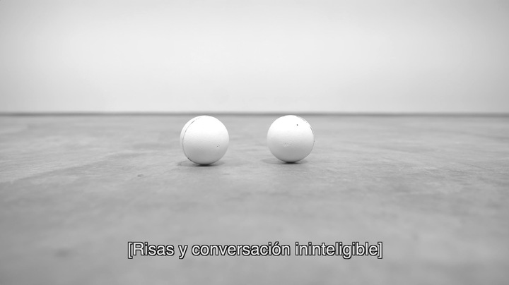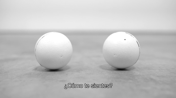 La más reciente serie de Rubén Gutiérrez es una invitación a intentar reaccionar y sentirse vivo en un mundo lleno de ansiedad y depresión por la ausencia del sentido. Dos esferas mecánicas conversan mientras ruedan sin cesar en el suelo gris de una galería mientras el montaje de una exhibición está en pausa y nadie las observa. El film de poco más de 10 minutos está hecho bajo el molde del diario filmado de cineastas experimentales como Jonas Mekas o video artistas contemporáneos como Oliver Payne y Nick Relph, pero Gutiérrez optó por llevar a cabo su pieza bajo una ficción animista donde los objetos y los elementos del mundo natural están dotados de movimiento, vida, alma y conciencia propia. Usando un par de esferas mecanizadas y voz en off, Gutiérrez hace un tour por una galería vacía, mientras se despliega una conversación alrededor de las ansiedades del mundo contemporáneo con el tono de una sesión de meditación. Gutiérrez aplica de nuevo la lección arduamente aprendida: la necesidad de hacer algo de la nada. Como motor y catalizador de “ONF” (objectnotfound.org) así como artista, escritor y director de cine, Gutiérrez ha dominado el arte de encontrar y recuperar ideas en el desierto cultural.